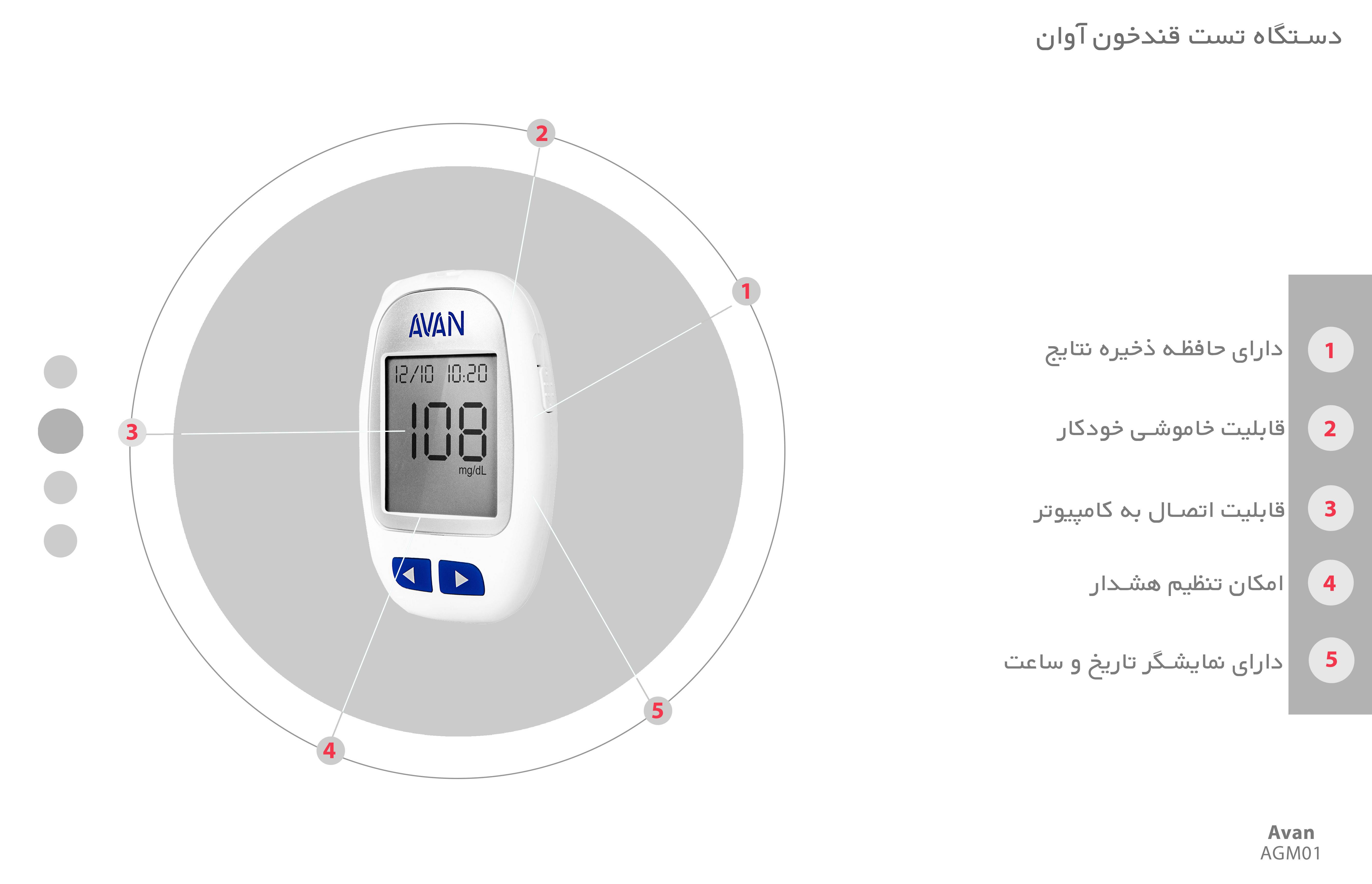 مشخصات کالاAvan AGM01 Blood Glucose Meter With 100 Test Strips Pack