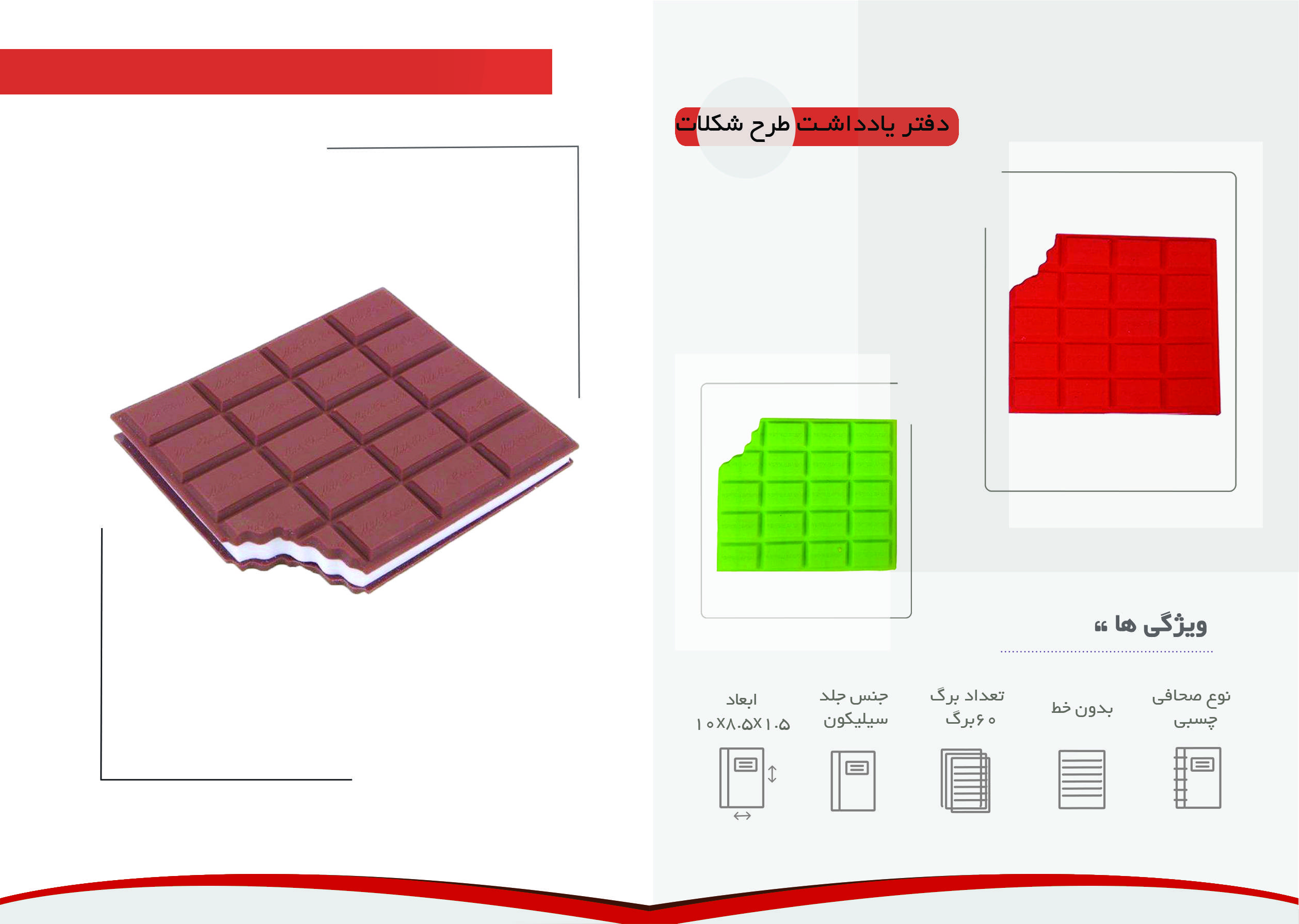 طراحی و رنگ دفتر یادداشت طرح شکلات بدون شک همان چیزی بوده که شما را تشویق به نوشتن میکند. این دفتر یادداشت به دلیل ابعاد مناسبی که داشته میتواند فضای ناچیزی را در کیف خانم یا آقا اشغال کند. این دفتر دارای ابعاد 10 × 8.5 × 1.5 سانتیمتر و دارای 60 برگ برای یادداشتهای روزانهی خود مناسب است. ساخت این دفتر یادداشت به گونهای بوده که با سیم صحافی شده و دارای برگهای سفید و بدون خط است. جلد استفاده شده در این محصول بسیتر نرم و انعطاف پذیر بوده و از جنس سیلیکون است. 60 عدد برگ این دفتر توسط سیمهای مستحکم و مقاومت به هم وصل شده و فرم صاحی عمودی دارد. ناگفته نماند که سیمی بودن این دفترعلاوه بر اینکه بتوانید برگهها را از هم راحت جدا کنید، به صورت خیلی منظم در کنار هم دیگر قرار گرفته و حسابی دفتر را خوش دست میکند.