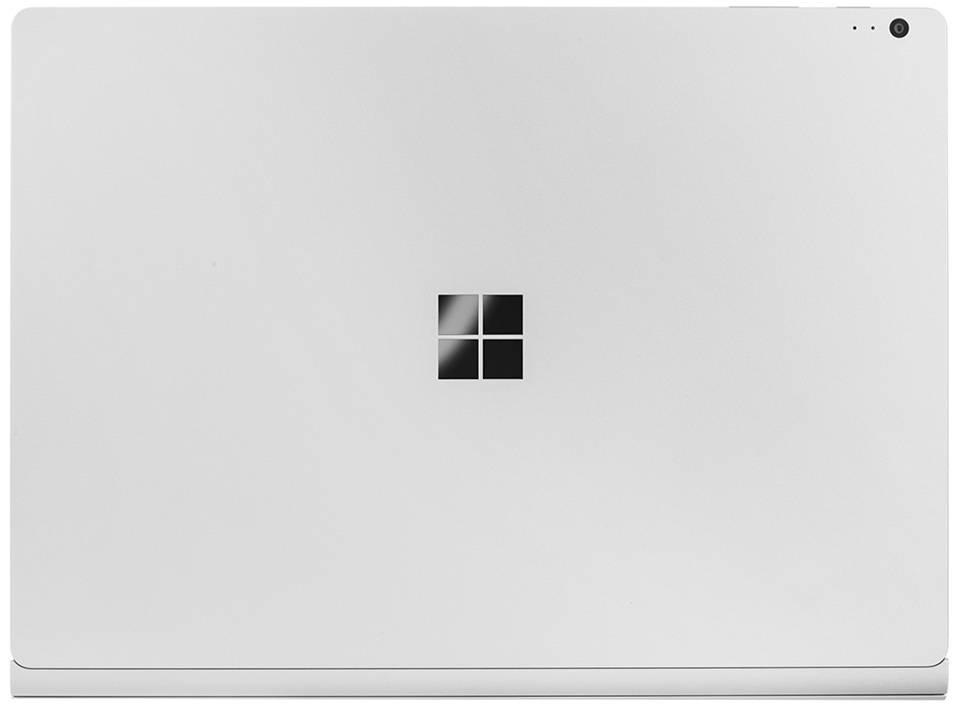 دستگاه Surface Book یک لپتاپ هیبریدی با صفحهی نمایش لمسی است که صفحهی نمایش آن کاملا از بدنه جدا شده و میتوان آن را به صورت لپتاپ یا تبلت استفاده کرد. البته مایکروسافت این محصول را به گونهای طراحی کرده است که حالت لپتاپ آن کاربرد بیشتری داشته باشد. بدنه Surface Book طراحی ساده و یکدستی دارد و در تمامی قسمتهای آن از فلز منیزیوم نقرهای رنگ مات استفاده شده است. استفاده از این جنس خاص علاوه بر زیبایی ظاهری، مقاومت بالایی هم به این محصول بخشیده است. البته طبیعتا دستگاههای تمام فلزی نسبت به بدنههای پلاستیکی وزن سنگینتری دارند و Surface Book هم از این قاعده مستثنا نیست. وزن این محصول برای پیکرهبندیهای مختلف سختافزاری بین 1400 تا 1600 گرم است که بهعنوان یک لپتاپ باریک 13.5 اینچی کمی سنگین بهنظر میرسد. البته به سختی میتوان این محصول را در دستهی لپتاپهای باریک یا همان الترابوکها قرار داد. چراکه علیرقم ضخامت کمتر از 14 میلیمتری در قسمت جلویی، به دلیل نوع طراحی لولای دستگاه، ضخامت آن در قسمت پشتی به 23 میلیمتر میرسد که کاملا از بازه استاندارد الترابوکها خارج است. در وسط قاب پشتی صفحهی نمایش، لوگوی مایکروسافت کاملا خودنمایی میکند و جلوه جذابی به قسمت بیرونی دستگاه داده است. البته برای این لوگو از فلز براق آینهای شکلی استفاده شده است که به راحتی خط و خش میافتد و به مرور زمان از شفافیت آن کاسته میشود. تا حد امکان از خطوط صاف و لبههای خمیده در ساخت بدنه این محصول استفاده شده که در کنار سادگی، باعث زیبایی و شکیل بودن آن شدهاند.