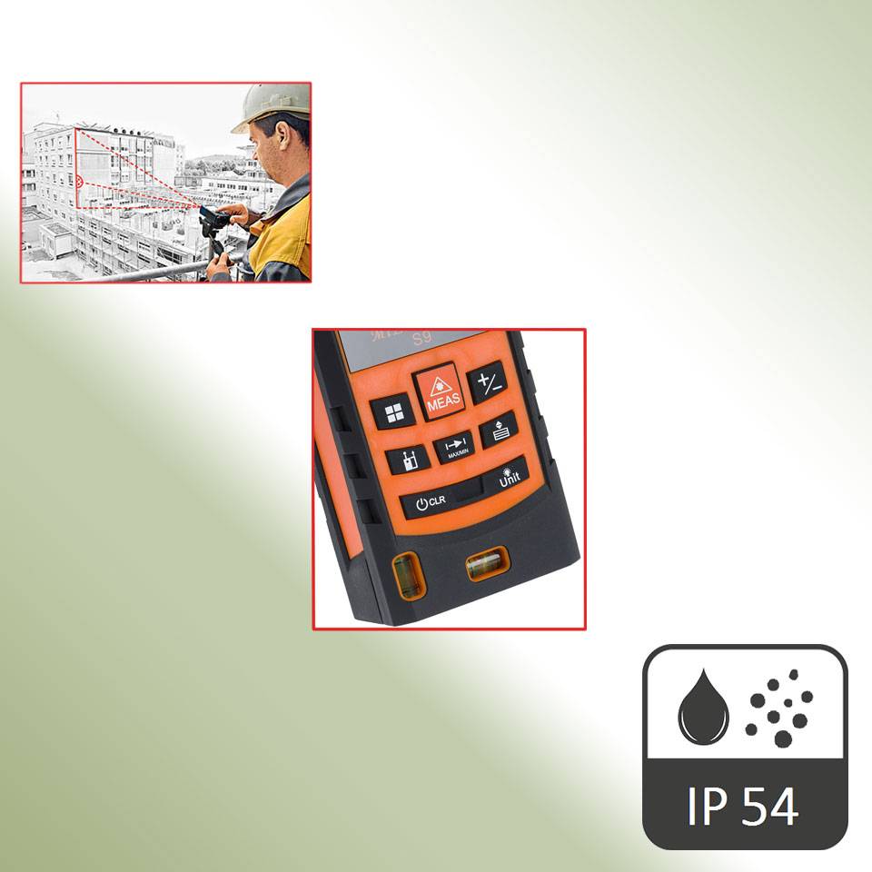 متر لیزری مدل «S9-100m» یکی از گزینه‌های خوب برای افرادی است که می‌خواهند فواصل نسبتا زیاد را اندازه‌گیری کنند. این متر قادر است حداکثر مسافتی 100متری را اندازه‌گیری کند و تنها چند میلی‌متر خطا داشته باشد. لیزر به‌کاررفته در این محصول از نوع کلاس 2 است که از بخش فوقانی دستگاه تابیده می‌شود.
