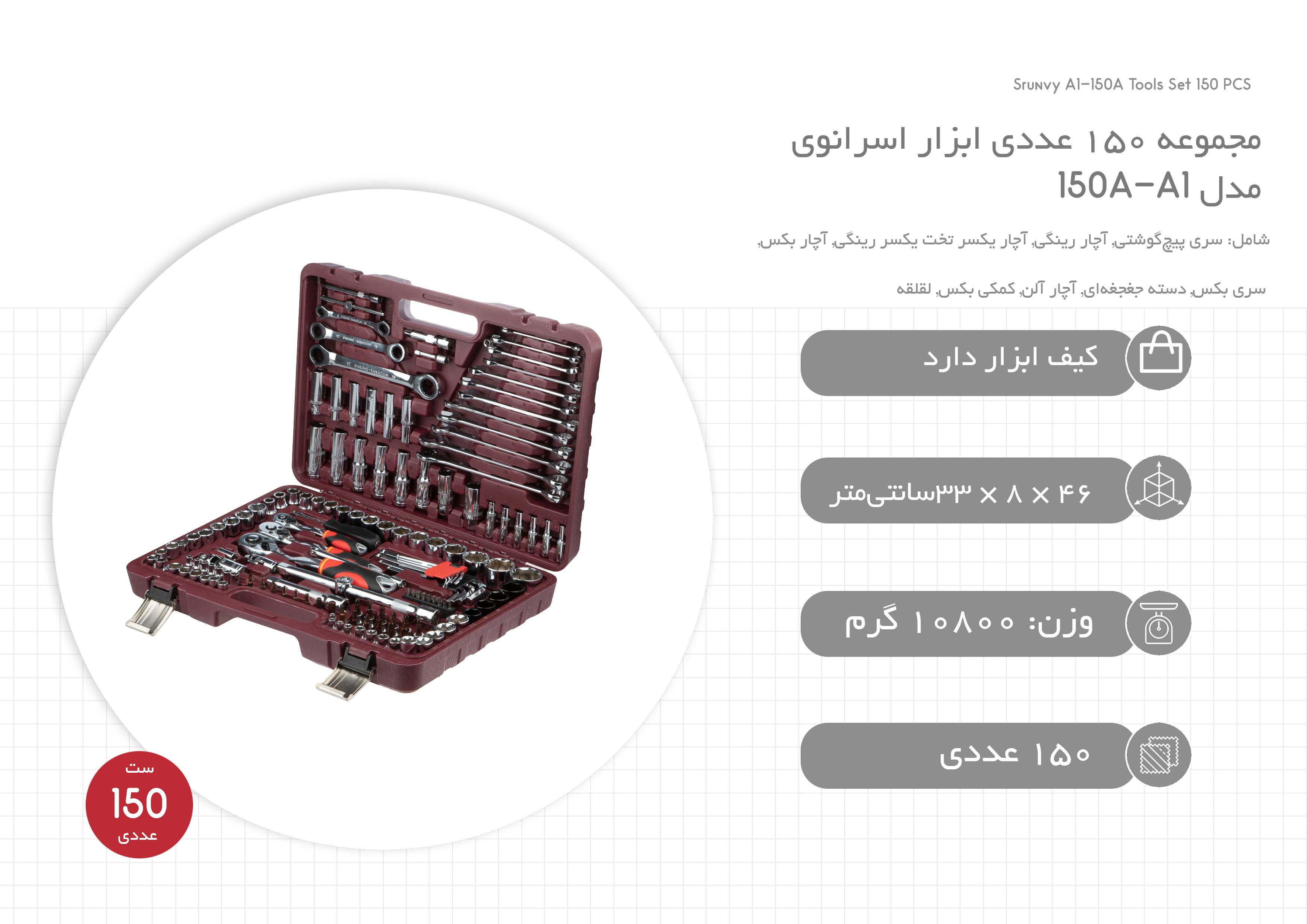 مشخصات کالاSrunvy A1-150A Tools Set 150 PCS