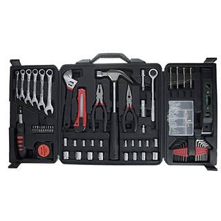 - شاملانبردست , آچار فرانسه , پیچ گوشتی , چکش , سری پیچگوشتی , آچار یکسر تخت یکسر رینگی , سری بکس , دسته جغجغهای , انبر دم باریک , کاتر , تراز , میخ