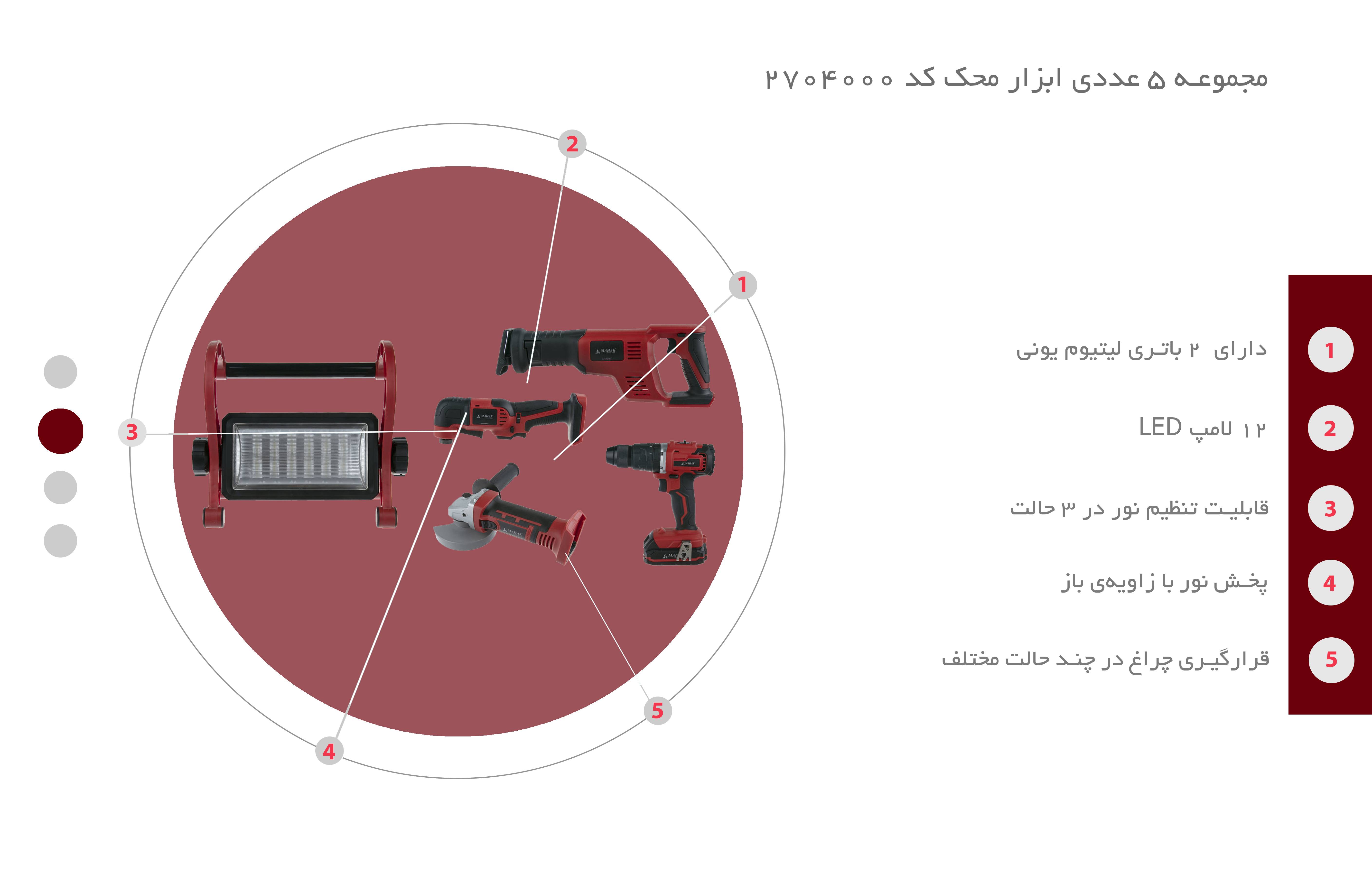 - شاملاره افقیبر , مینی فرز , دریل پیچگوشتی , ابزار همهکاره , چراغ کار , باتری شارژی