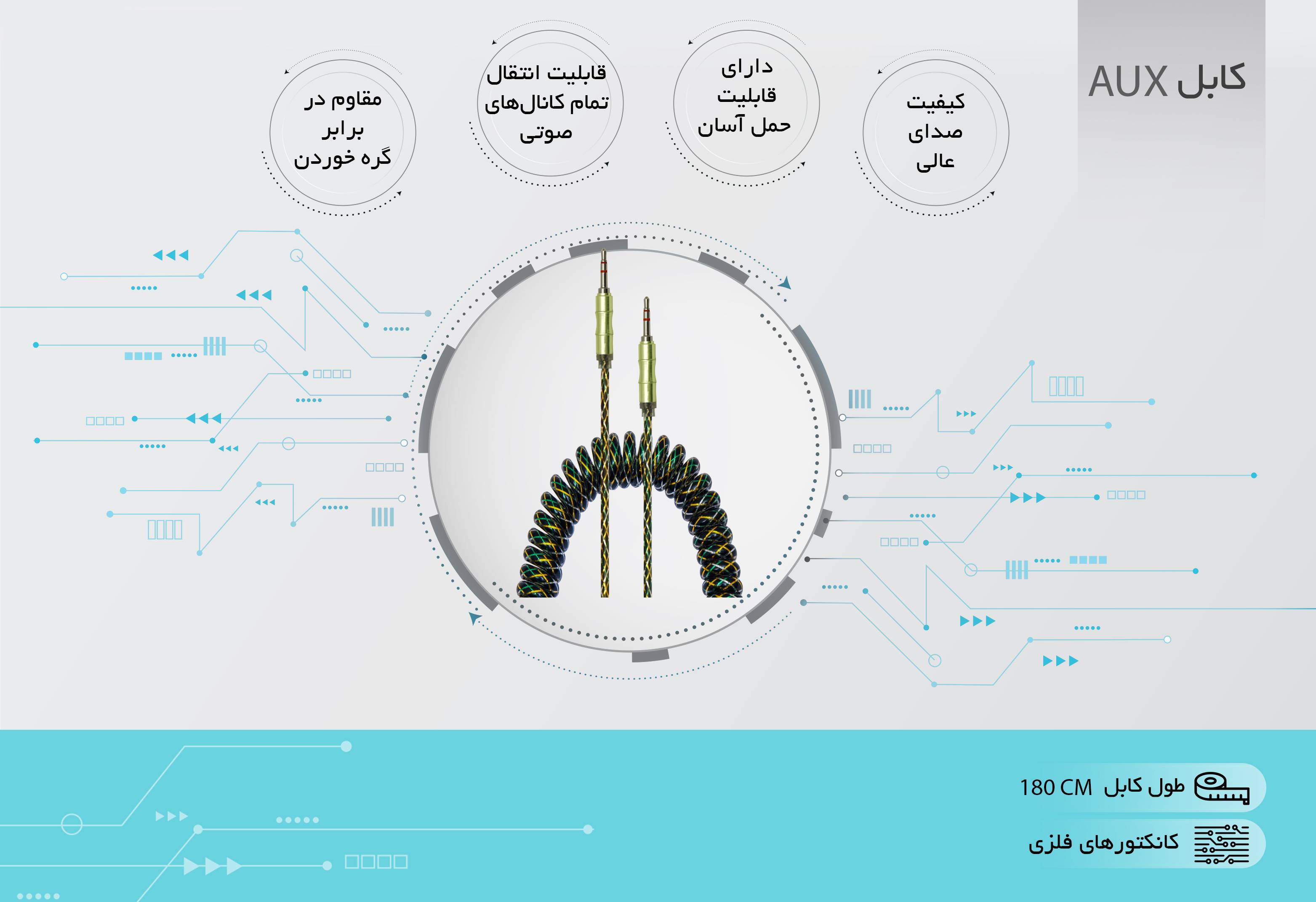 کابل انتقال صدا سومگ « SOMEG » یک کابل بسیار پیشرفته و دارای سیم فنری یا به اصطلاح سیم تلفنی است که در بلندترین حالت به 1.8 متر میرسد. فنری بودن آن باعث شده که بتوانید آن را بهراحتی با خود حمل کنید و کاربرد بیشتری نسبت به محصولات مشابه خود داشته باشد .مواد اولیه با کیفیتی که در ساخت این کابل به کار رفته است کیفیت و طول عمر بالای آن را تضمین میکند. با استفاده از کابل سومگ در هنگام پخش صدا نویز ایجاد نمیشود و کیفیت صدای فوقالعاده بالایی را توسط اسپیکرهای پخش کننده، ایجاد میکند . این کابل در دو سر خود یک کانکتور(جک) ۳٫۵ میلیمتری دارد و در اثر خمشدن، سیم آن قطع نخواهد شد. کابل AUX سومگ قابل اتصال به اسمارت فونها، لپتاپ، تلویزیون، تبلت، بلندگوها، استریو خانگی، استریو ماشین، گیرنده دیجیتال و هر دستگاه دیگری که دارای جک ۳٫۵ میلیمتری باشد را دارد و به دلیل داشتن رنگبندی متنوع برای کاربران بسیار جذاب است.