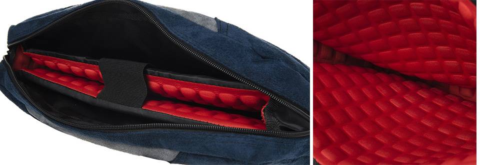 در قسمت رویهی کیف از پارچهی لطیف شبیه به Alcantara استفاده شده و دست کشیدن روی آن، حس خوبی را به شما منتقل خواهد کرد.